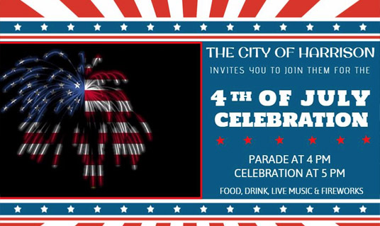 HARRISON 4TH OF JULY FIREWORKS CELEBRATION Begins at 5:00 At The Community Center,